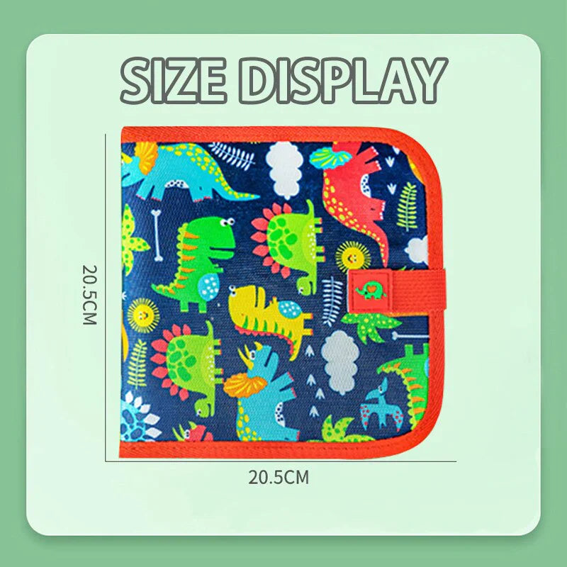 The erasable writing book pad, with sticky button and inner pocket for painting pens storage, is very convenient to carry out for kid in acarorairplane travelactivity games, and also the suitable size for kids kindergarten learning and educational purpose.