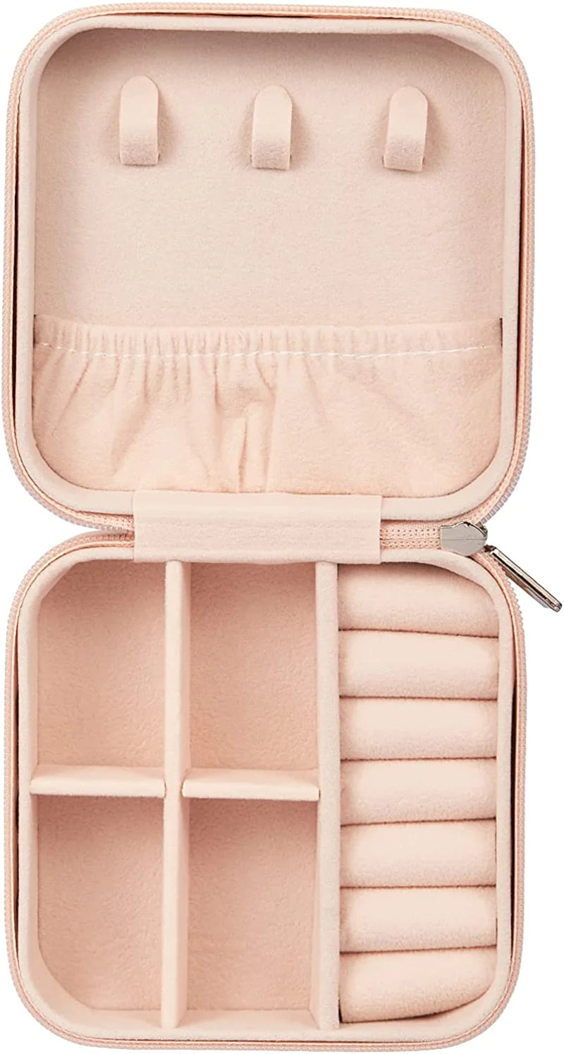 👜 SPACIOUS YET COMPACT: Don't let its small size fool you. Our jewelry organizer has room for multiple earrings, rings, necklaces, and bracelets. It's the perfect travel companion that fits snugly in your luggage or small bag. Organization on the go!