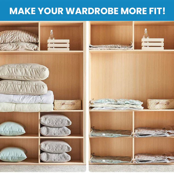 Livingmart's vacuum bagsadds more room to your clothes storage & wardrobe, lofts & suitcase by 4 times. Quicknik vacuum sealer bags can be used for a variety of items including clothes, comforters, pillows, duvet, beddings, etc